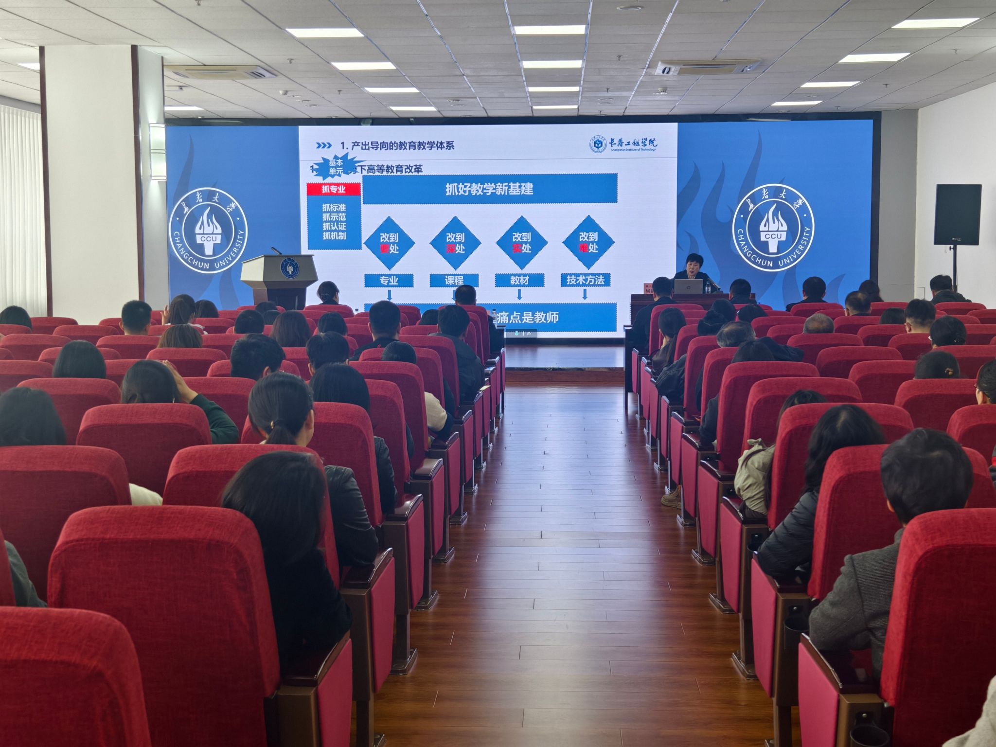 會議采用線上線下同步進行的方式,長春工程學院教授侯麗華作了題為《面向產出的人才培養方案與教學大綱制定》的專題講座。侯麗華結合多年教學管理經驗,對產出導向的教育教學體系、產出導向的培養方案制定、產出導向的課程大綱制定、產出導向的課程目標評價等方面進行了詳細解讀。