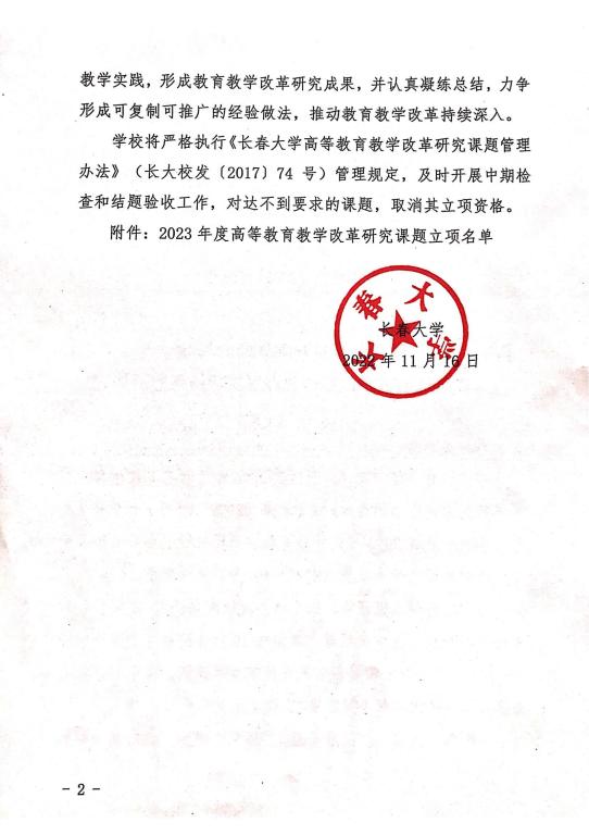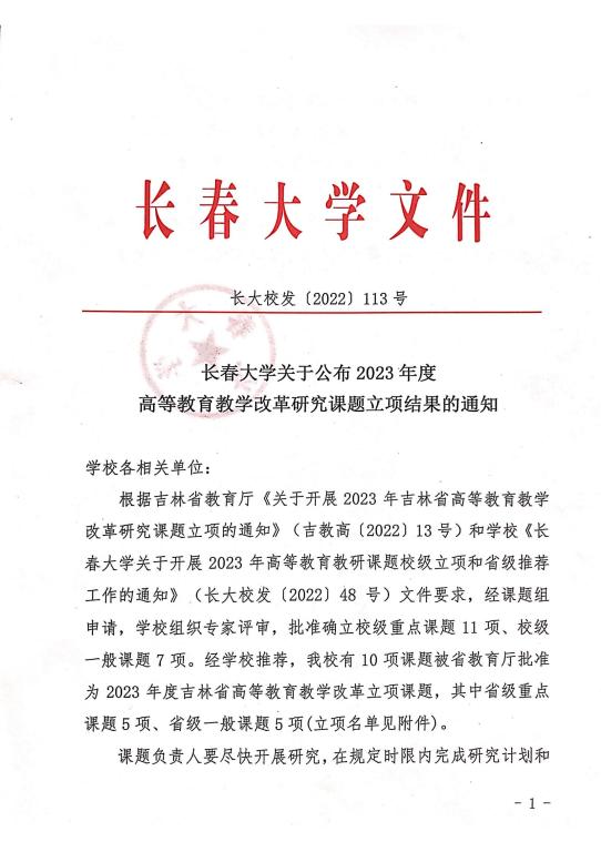 長春大學關于公布2023年度高等教育教學改革研究課題立項結果的通知