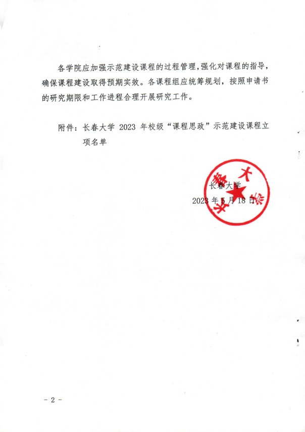 長(zhǎng)春大學(xué)關(guān)于公布2023年校級(jí)“課程思政”示范建設(shè)課程立項(xiàng)結(jié)果的通知