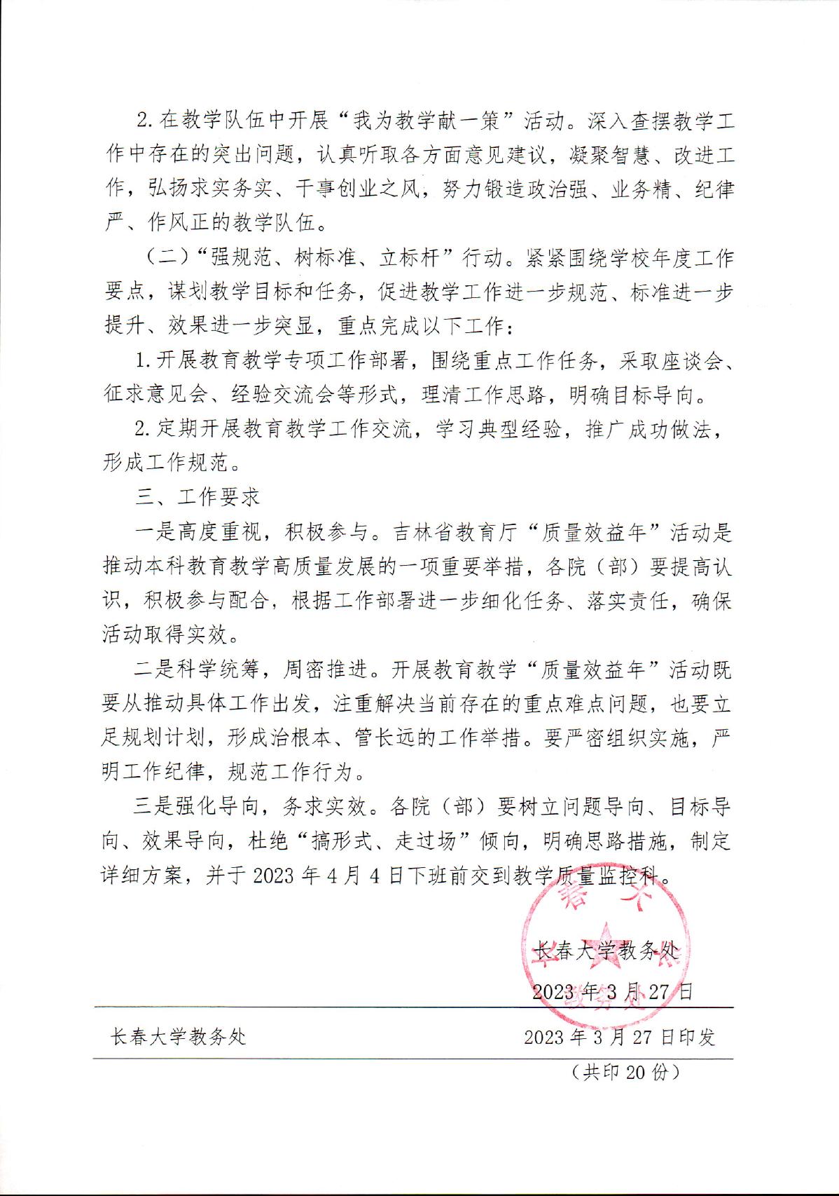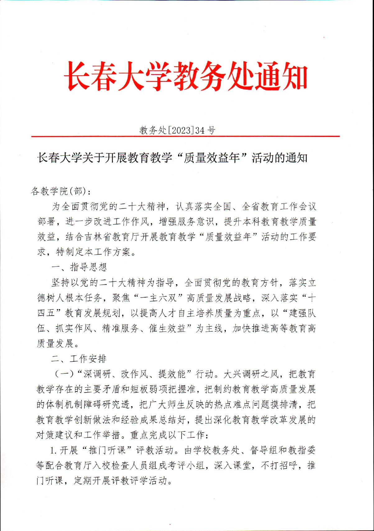 長(zhǎng)春大學(xué)關(guān)于開(kāi)展教育教學(xué)“質(zhì)量效益年”活動(dòng)的通知