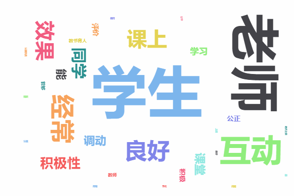圖1 關(guān)于“教師能否教書育人、公正地評價學(xué)生、調(diào)動學(xué)生學(xué)習(xí)積極性?”詞云圖