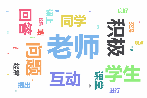 圖2 關(guān)于“了解學(xué)生在課堂上的主動參與程度。他們是否積極回答問題、提出觀點或與教師進行互動交流?”詞云圖