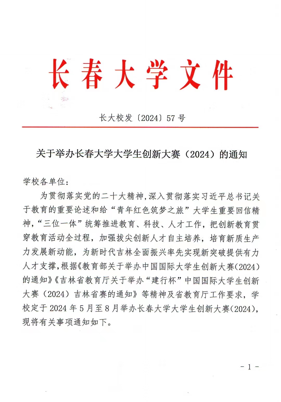 關于舉辦長春大學大學生創新大賽(2024)的通知