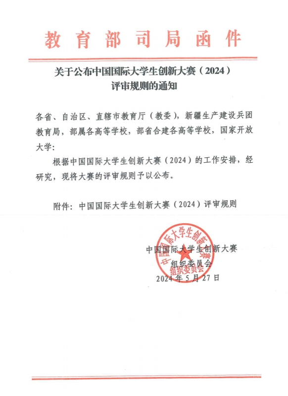關于公布中國國際大學生創新大賽(2024)評審規則的通知
