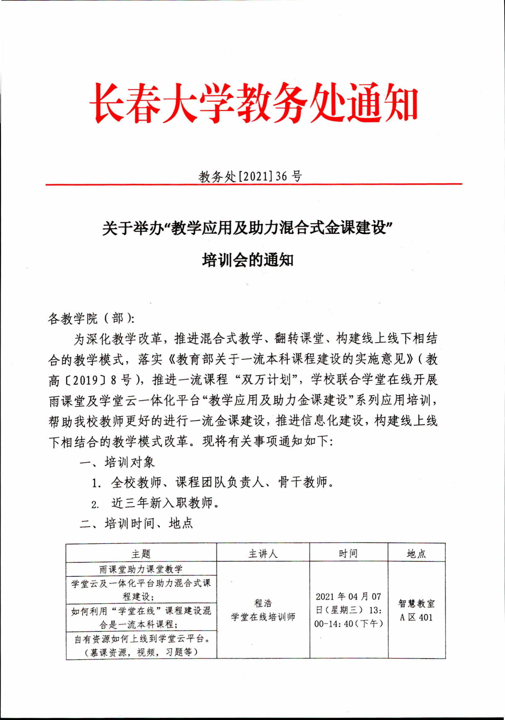 關于舉辦“教學應用及助力混合式金課建設”培訓會的通知