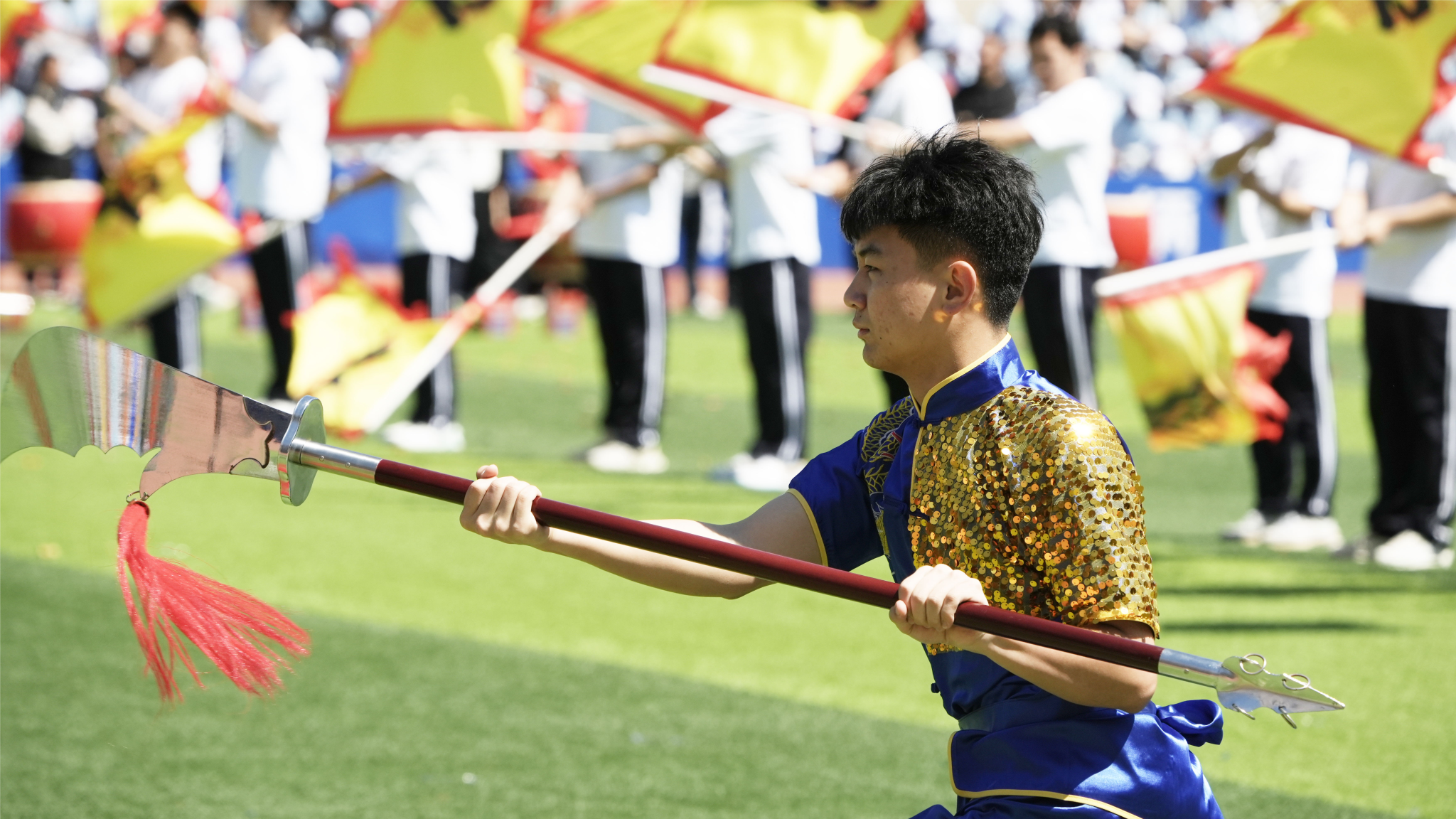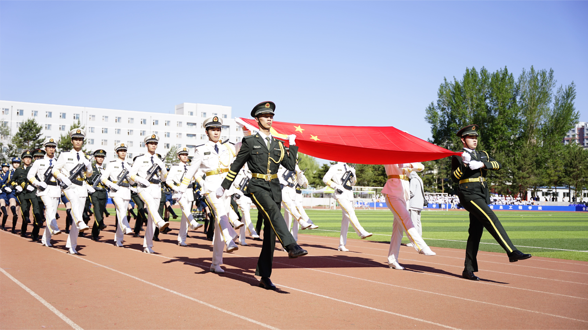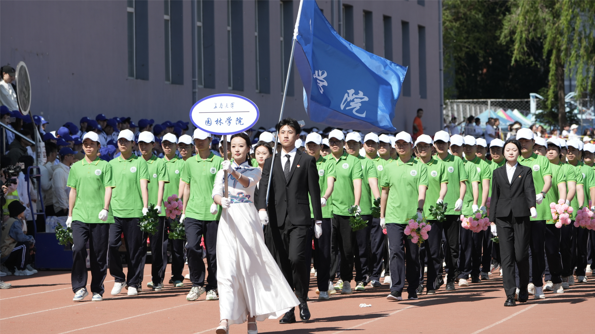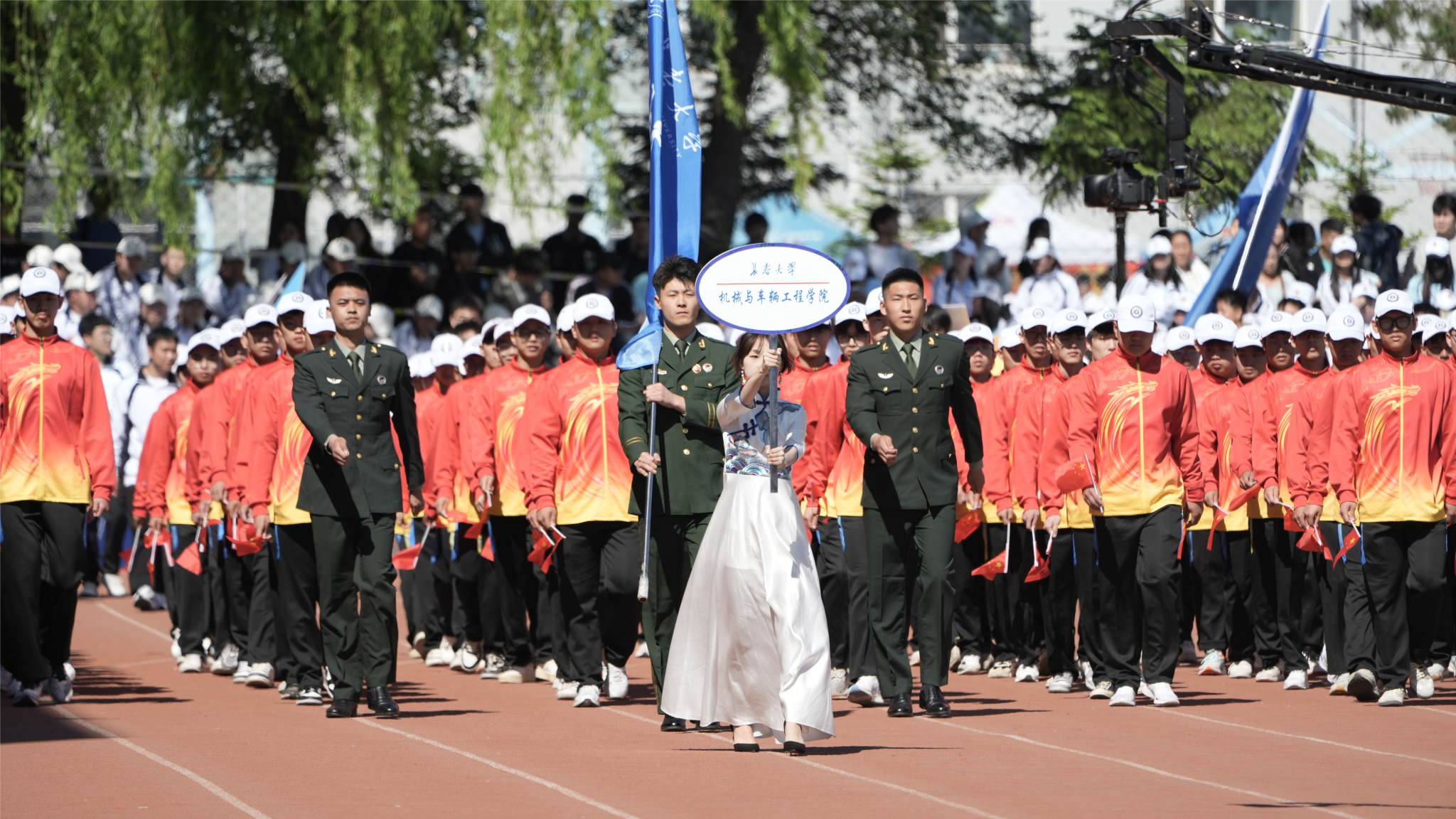 8:00,伴隨著激昂的《運動員進行曲》,來自全校各單位的18支檢閱隊伍邁著矯健的步伐走過主席臺,步履鏗鏘、旗幟高揚,展示學科特色、激揚青春風采,以飽滿的熱情彰顯新時代學子拼搏向上的斗志和決心。
