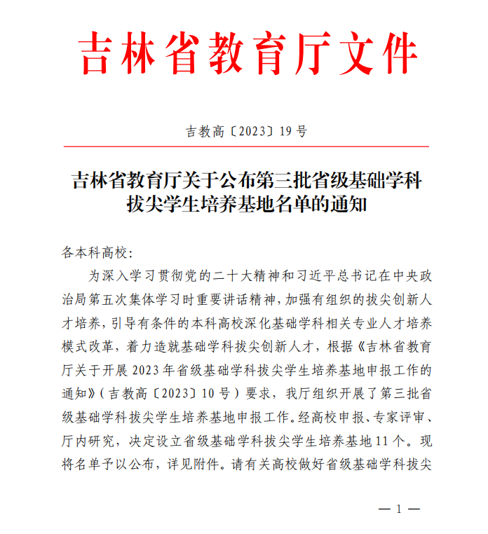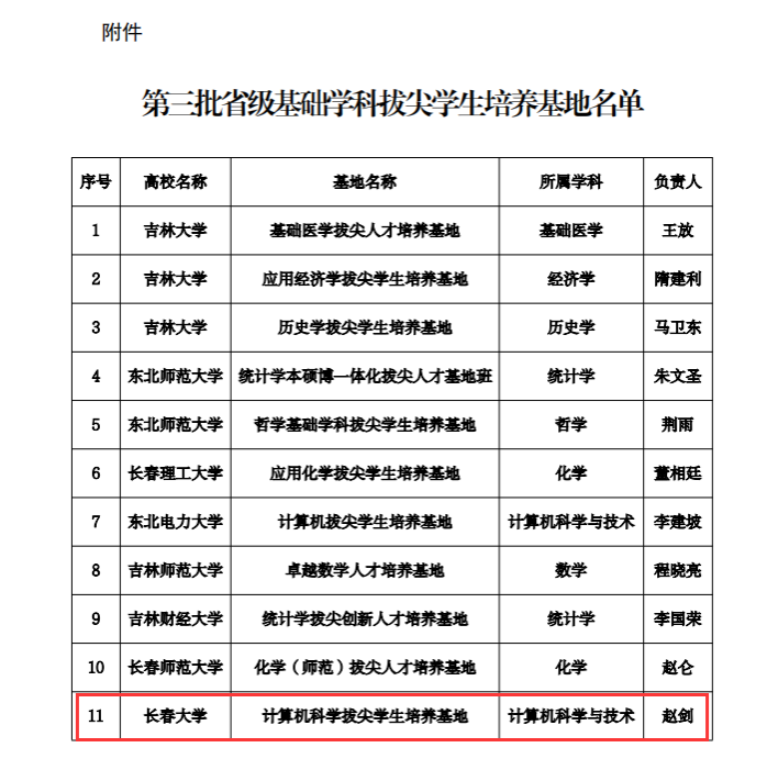 近日,省教育廳公布了第三批省級基礎學科拔尖學生培養基地評選結果,全省11個基地獲評第三批省級基礎學科拔尖學生培養基地,我校計算機科學技術學院申報的“計算機科學拔尖學生培養基地”成功入選。
