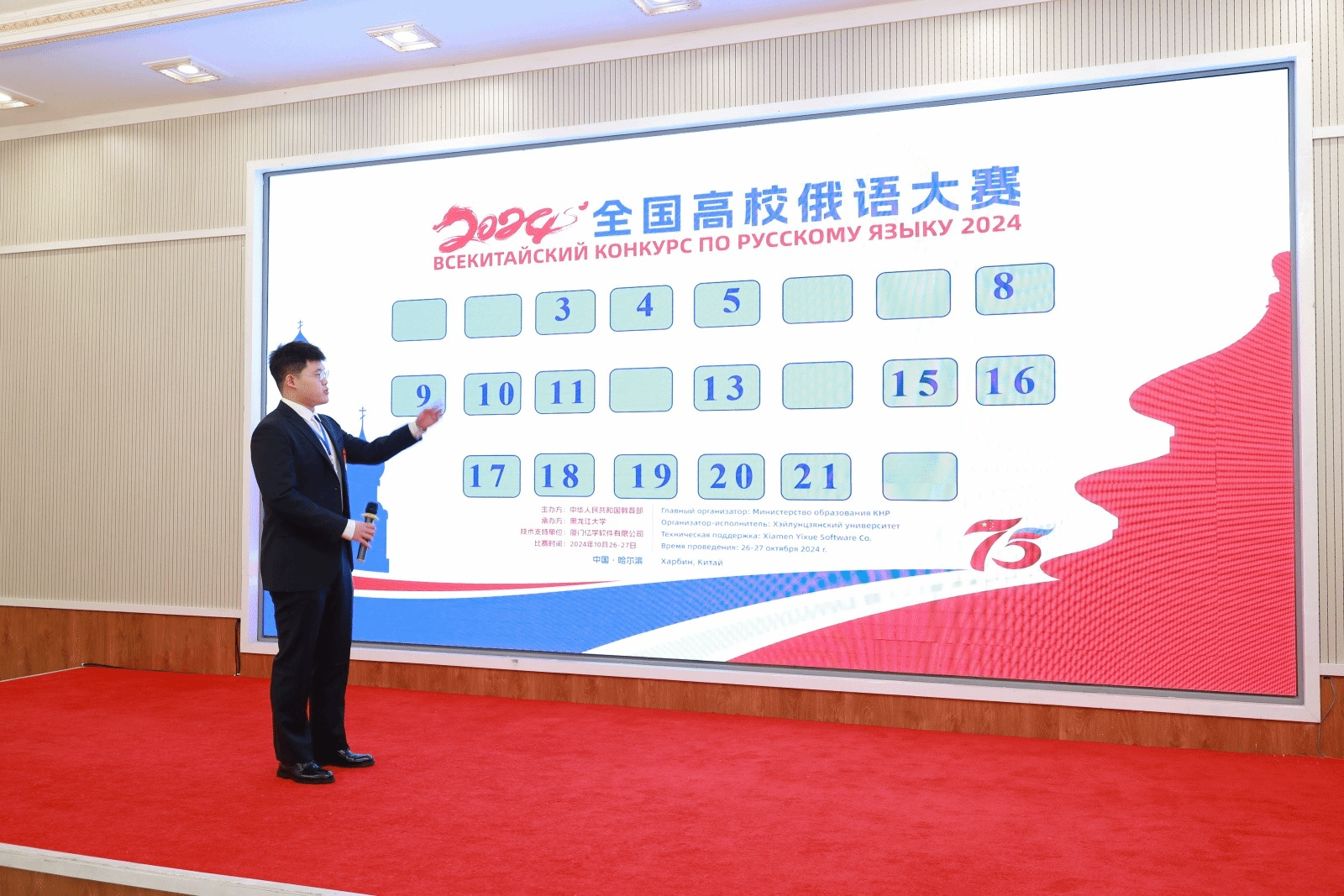 2024年10月25-27日,由中華人民共和國教育部主辦、黑龍江大學承辦的2024年全國高校俄語大賽在哈爾濱伏爾加莊園舉行。大賽是中俄人文教育領域交流與合作的機制化項目,來自全國165所高校的俄語優秀學子參加本屆大賽,共同角逐低年級組、高年級組和研究生組三個級別的獎項。大賽于27日上午決出各組別獎項,順利落下帷幕。
