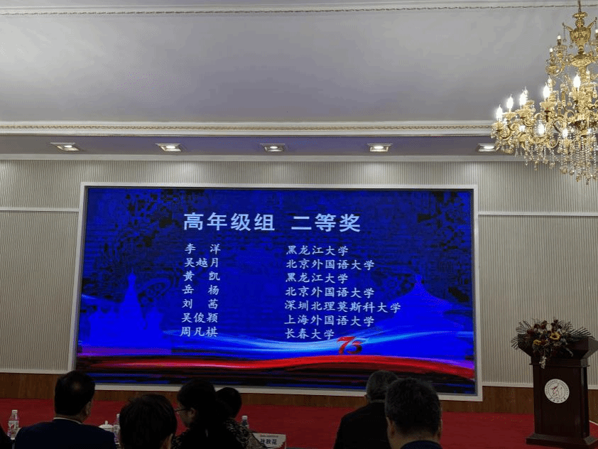 本次大賽經過初賽、復賽和決賽三個階段的角逐,我校參賽選手2021級俄語專業周凡棋同學以高年級組初賽排名第五的總成績晉級復賽。在復賽“命題演講”環節成績90.00分,“口語表述”環節成績90.71分,總分排名第四的成績晉級決賽,作為吉林省高校唯一晉級決賽的選手,最后以總分排名全國第七的成績摘取全國俄語大賽二等獎,在全國高校中列北京第二外國語學院、黑龍江大學、北京外國語大學、上海外國語大學、深圳北理莫斯科大學的獲獎選手之后。這是我校參加此項賽事以來的最好成績。